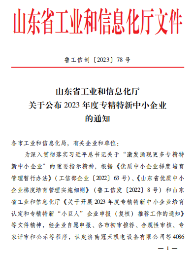 省工業(yè)和信息化廳認(rèn)定,專注于細(xì)分市場、掌握關(guān)鍵核心技術(shù)、創(chuàng)新能力強(qiáng)、市場占有率高、質(zhì)量效益優(yōu),在專業(yè)化、精細(xì)化、特色化、新穎化等方面表現(xiàn)突出的中小企業(yè)。這一稱號的獲得,充分體現(xiàn)了